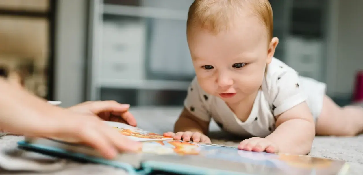 Reading aloud from the start is key to setting your baby on the path to literacy. But with infants, you obviously don’t have to be reading stories per se. In fact, there don’t even have to be words on the page right at first. Early on, the idea is to capture babies’ attention and engage them with your voice, gestures, and facial expressions to spur a verbal or other response of their own. Coos, babbles, and book grabs encouraged!