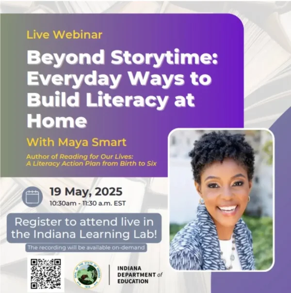 Join the Indiana Department of Education for a live, engaging webinar titled “Beyond Storytime: Everyday Ways to Build Literacy at Home” on Monday, May 19, 2025, at 10:30 a.m. Eastern Time. This free session is designed especially for families with children from birth through second grade, offering practical, easy-to-implement strategies to support early literacy development.